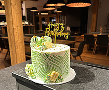 Simone Bieringer ist leidenschaftliche Bäckerin. In der großen Show-Küche des Restaurants hat sie schon oft mit Gleichgesinnten gebacken. Macarons, Törtchen, Cake Pops, Cupcakes, Drip Cakes … und noch viel mehr. Ihr neuster Coup ist die Stencil Torte.