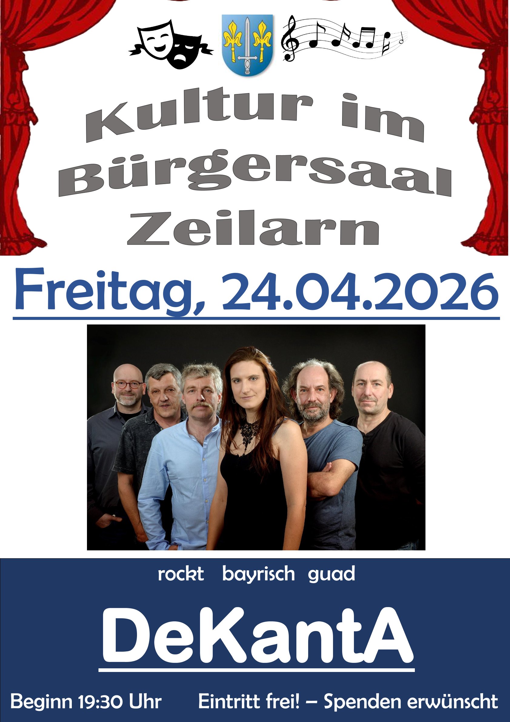 DeKantA ist ein Erlebnis, das man live erleben muss! Die sechsköpfige Band um die charismatische Sängerin Katja Amler verbindet rockige Klänge mit bayerischen Texten und einer mitreißenden Liveshow. Die Songs erzählen Geschichten, die berühren, zum Nachdenken anregen und mit Humor unterhalten. Von rockigen Hymnen über nachdenkliche Balladen bis hin zu kabarettistischen Einlagen bietet die Band ein abwechslungsreiches Programm, das jeden Konzertabend unvergesslich macht. Instrumente wie Harfe, Akkordeon, Bluesharp und Klarinette verleihen jedem Song eine besondere Note. Die energiegeladene Bühnenpräsenz der Band, die humorvolle Moderation und die herzliche Verbindung zum Publikum sorgen dafür, dass jeder Abend mit DeKantA unvergesslich bleibt. Sichern Sie sich jetzt Tickets und erleben Sie bayerischen Rock, der direkt ins Herz geht!