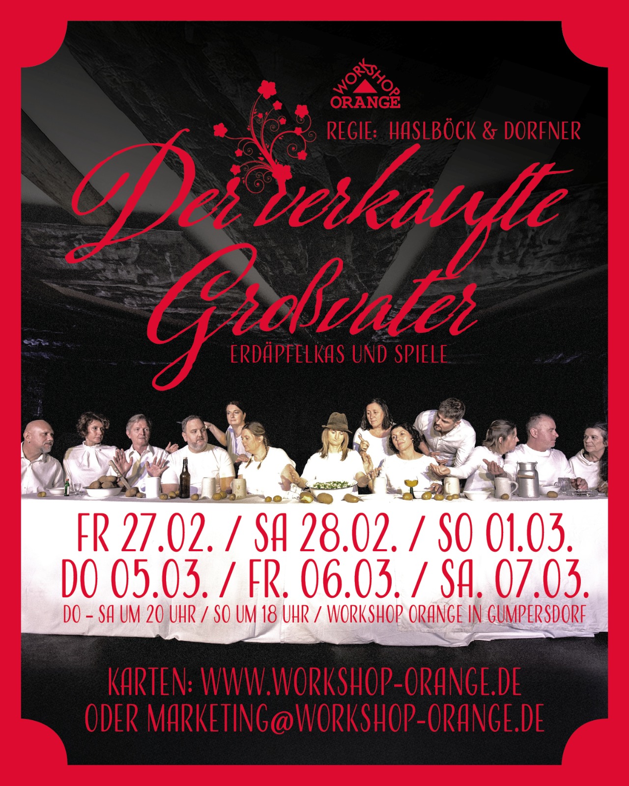 !!Bitte beachten: Warme Küche vor den Aufführungen von Donnerstag – Samstag jeweils von 18:00 – 19:30 Uhr in unserer Stube. Am Sonntag von 16:00 – 17:30 Uhr!!